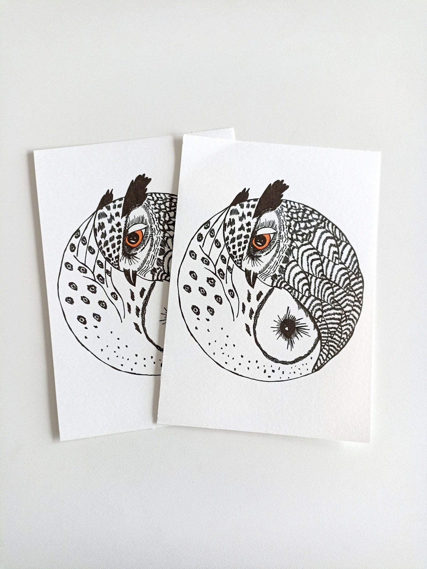 Print s autorskou kresbou soviček inspirované symbolem Jin a Jang. Tisk je provedený na akvarelový papír s texturou. Můžete si ho zarámovat, pověsit na nástenku nebo ho použít jako přání či vzkazovou kartičku.