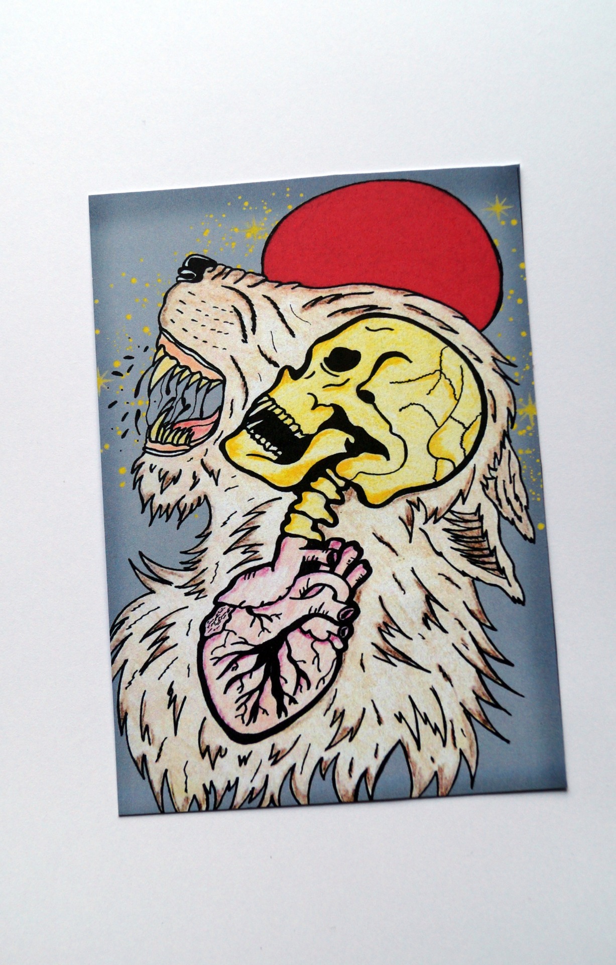 Print autorské kresby vlkodlaka. Print je vhodný k zarámování, pověšení na nástěnku, ale dá se využít i jako pohled, pozvánka na párty nebo pro předávání vzkazů a přání.